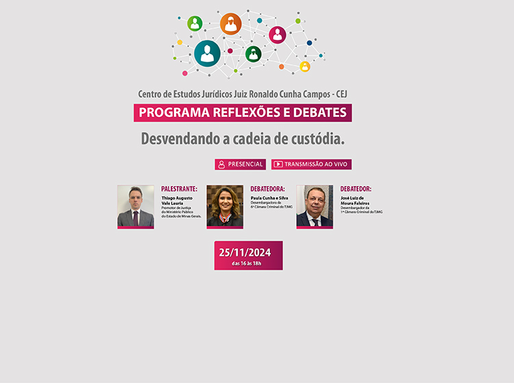 Magistradas e magistrados, assessoras e assessores, servidoras e servidores, estagiárias e estagiários, colaboradoras e colaboradores terceirizados do TJMG e público externo.Objetivos do “Programa Reflexões e Debates - Tema: Desvendando a Cadeia de Custódia“