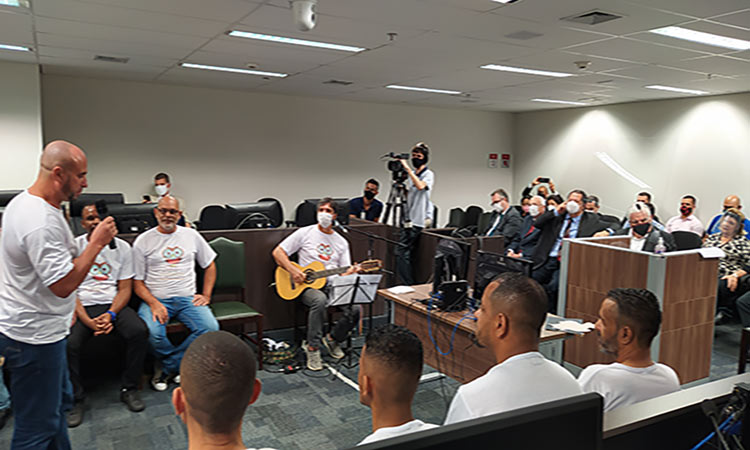 Os treze recuperandos que apresentaram a atração, se formaram recentemente como contadores de histórias, junto a outros 26 internos, pelo Projeto Caminhos e Contos – A Ressocialização pela Palavra, uma realização da EJEF, em parceria com o Programa Novos Rumos do TJMG.