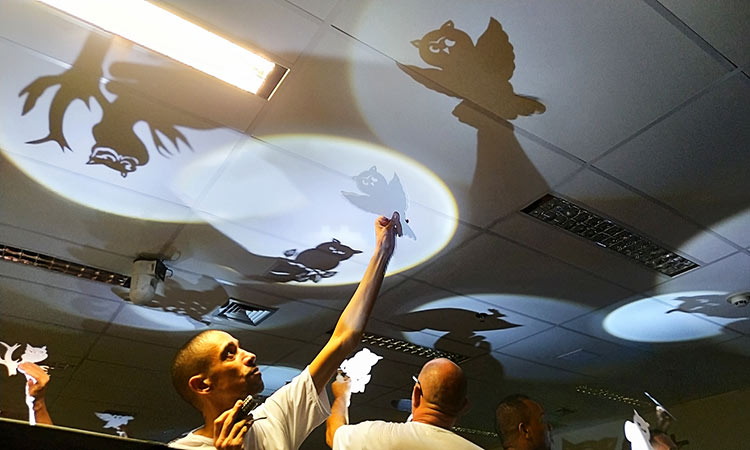 Os recuperandos abriram as apresentações com uma bela performance de luzes e sombras. Imagens de corujas foram projetadas nas paredes do plenário através de luzes de lanternas. As histórias e as diversas canções apresentadas, acompanhadas por um solo de viola caipira, executado pelo professor Vilmar de Oliveira, tiveram a coruja como protagonista. Não foi por mera coincidência. A coruja, símbolo da sabedoria, é a ave preferida pelo desembargador Tiago Pinto.