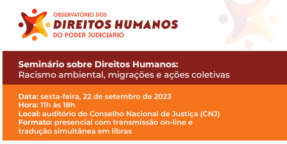 O Conselho Nacional de Justiça realizará, no dia 22 de setembro, o Seminário Seminário Direitos Humanos: Racismo ambiental, migrações e ações coletivas