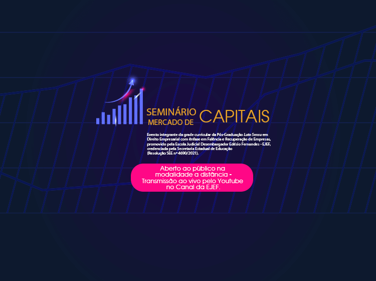 De ordem do Excelentíssimo Segundo Vice-Presidente do Tribunal de Justiça do Estado de Minas Gerais e Superintendente da Escola Judicial Desembargador Edésio Fernandes – EJEF, Desembargador Renato Luís Dresch, comunica-se que estarão abertas as inscrições para o Seminário Mercado de Capitais, conforme especificado abaixo: